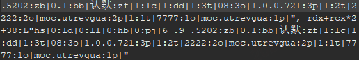 解密出来的Shellcode内容,其代码和数据部分会被黑客预先用codemark 进行分隔。其中,数据区块前部主要为执行参数、执行条件,以及一些标志位,而后部则是逆序处理过的域名,形如: