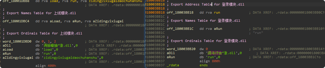 解密后的代码可以执行包括远程控制在内的各种操作,其中也包括上线模块.dll以及登录模块.dll等。